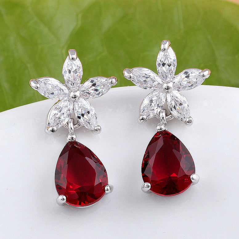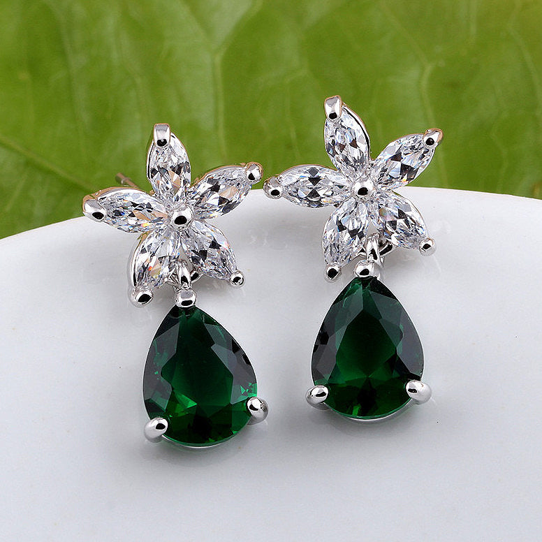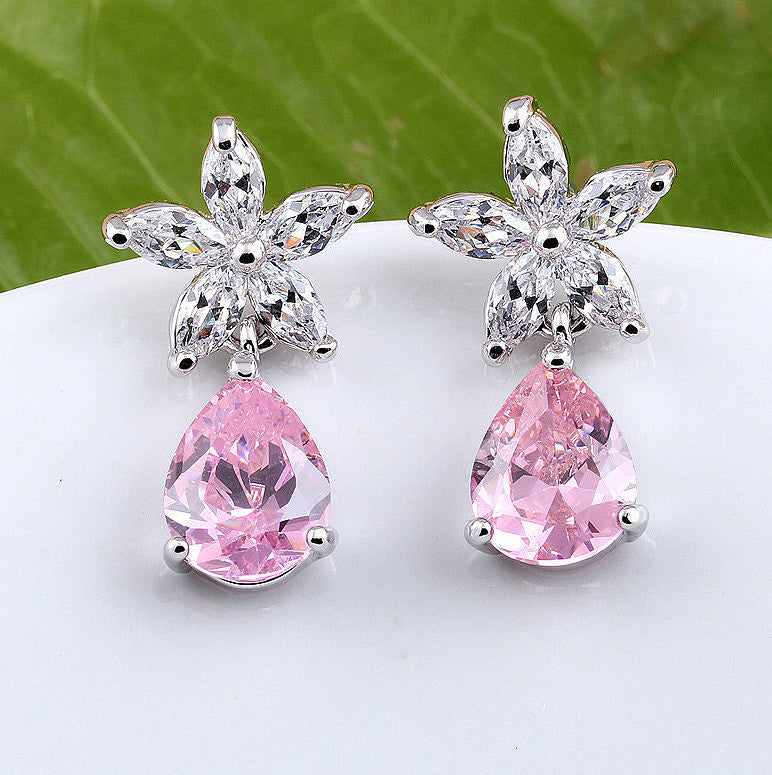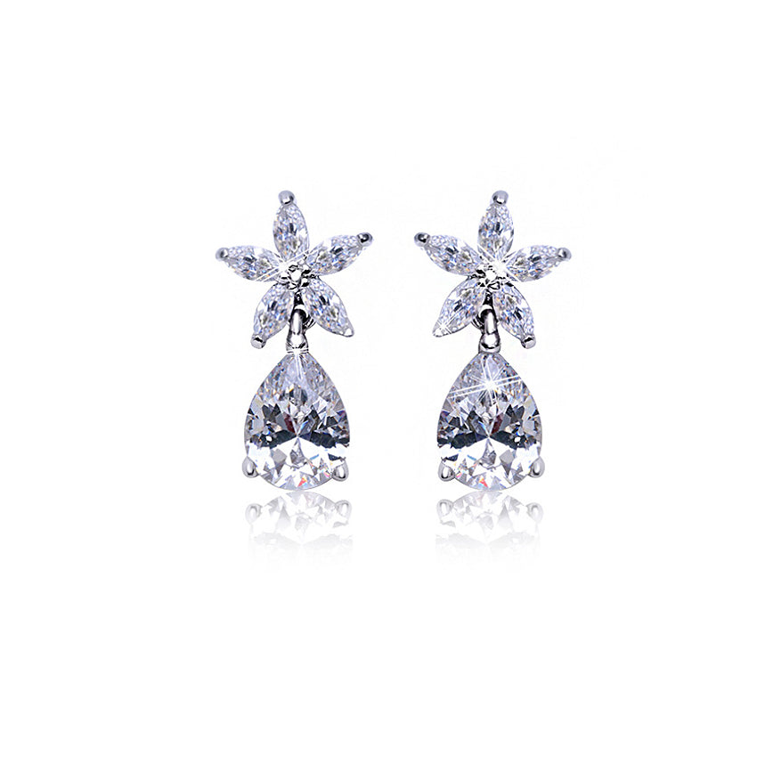 This timeless pair of earring is crafted with a centre pear cut cubic zironia diamond dropping from the stars. This gorgeous jewellery set features a single teardrop dropping from the stars and the design gives off extra sparkle and will effortlessly accent your look. Truly a classic design that is perfect as a gift as well.