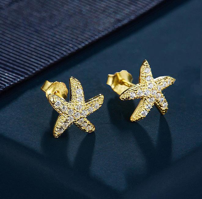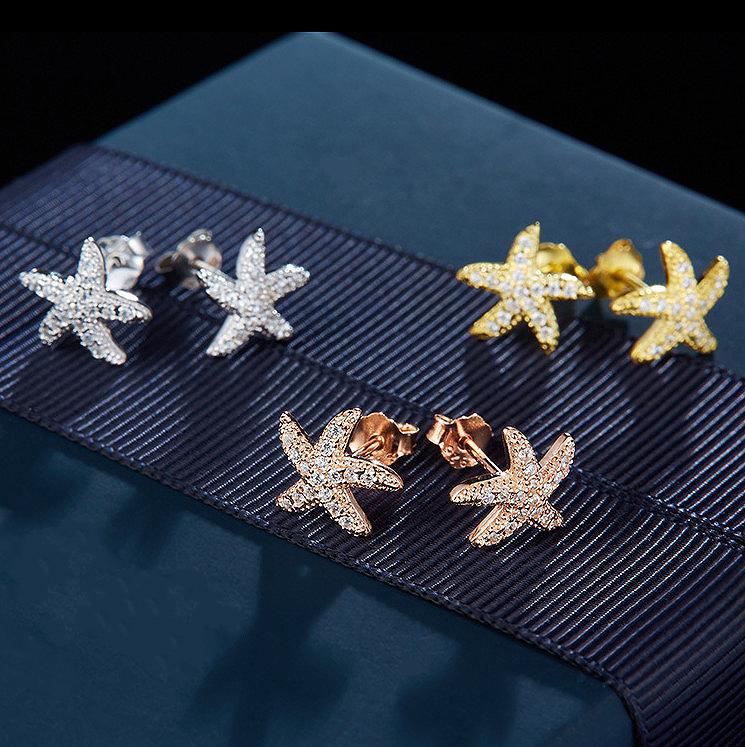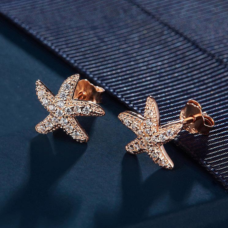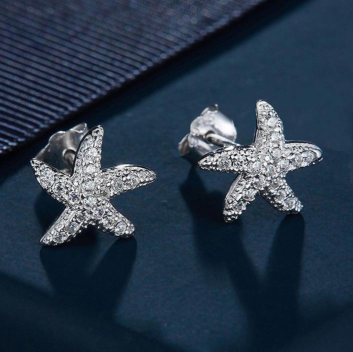 Make a shimmery splash into nautical fashion when you wear our gorgeous silver Swarovski crystal pave Starfish stud earrings. Crafted in 925 sterling silver with the option of gold or rose gold plating, these starfish studs sparkle with clear Swarovski crystal. These pair of cute starfish earrings goes with any outfit, also make this a great present to anyone on your holiday gift list.