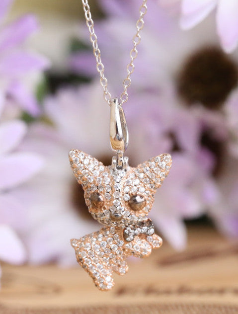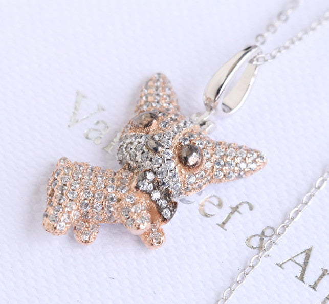 Adorable Dog Pavé Swarovski Crystal Gold Pendant Necklace