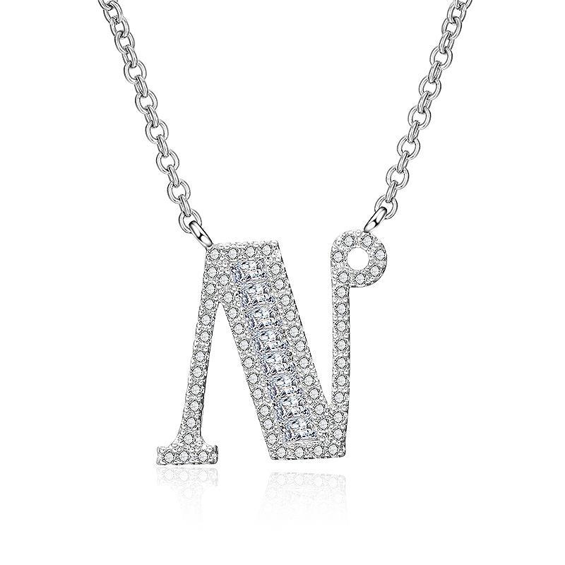 Match any outfits with this initial letter pendant that creates a classy look every time you wear it. With lab created white sapphire in the middle, paved Swarovski element stones encrusted surrounding are a beautiful and sparkly addition to the pendant that makes you always look elegant. This white sapphire charm is an beautiful gift for women of all ages and suitable to any formal or casual event. When paired with the 16 inch chain included with this piece, the letter becomes a classy initial letter necklace. Letter pendants are classic pieces of jewelry and a nice addition to any jewelry collection.