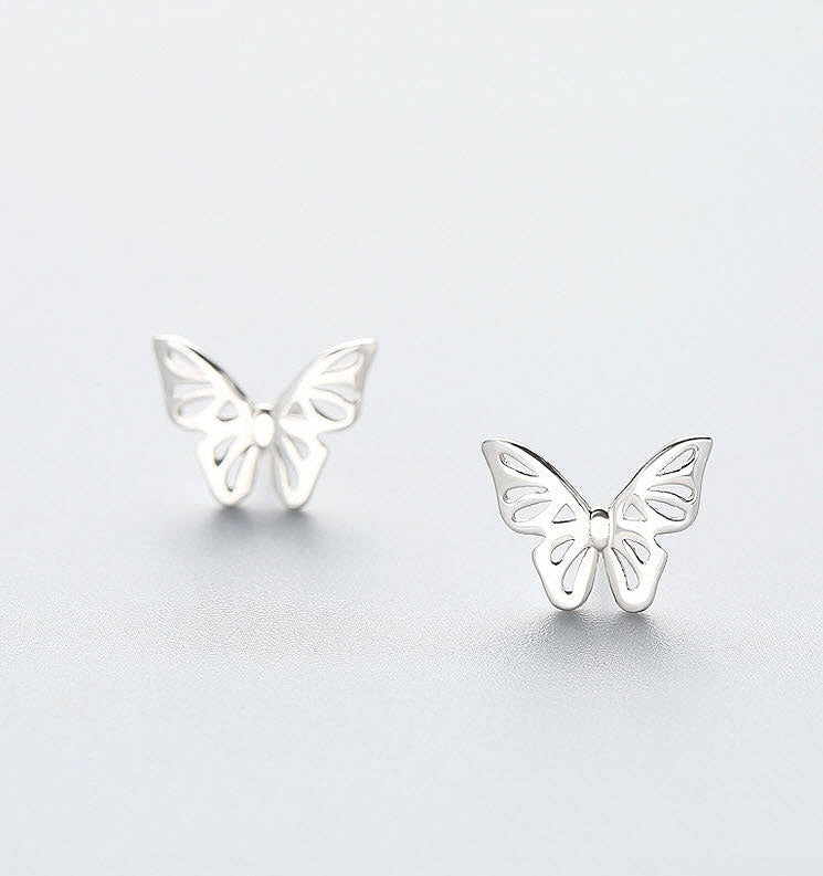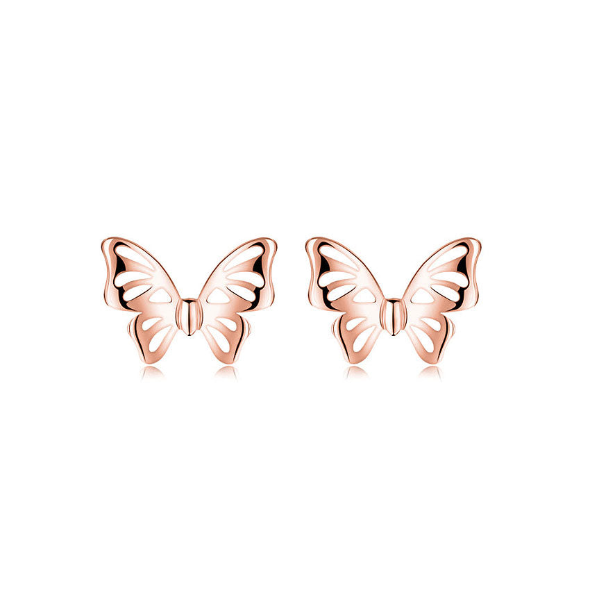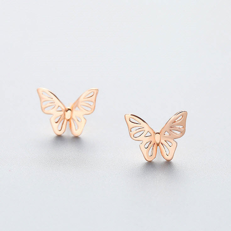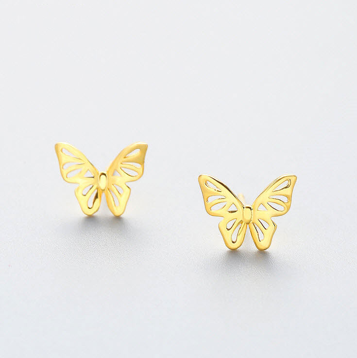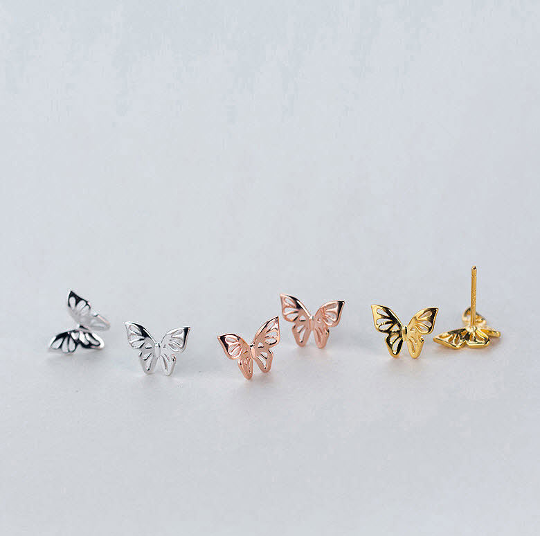 Add instant cuteness to your look with this pair of butterfly stud earrings. These petite butterfly stud earrings are made of sterling silver plated with 18K yellow gold, rose gold or silver. These sterling silver earrings make a terrific birthday gift for her. Buy this bright and sparkling spring jewelry and add to your accessory collection.