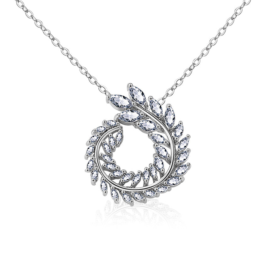 This beautiful estate jewelry inspired design is crafted with 36 high-quality sparkling marquise cubic zirconia diamonds to create a detailed wreath look. This stunning pendant necklace is a must-have for your Holiday collection and can also be easily worn all year round with its contemporary and unique design.