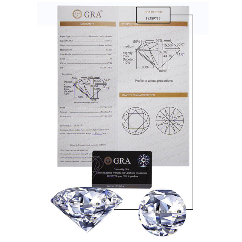 *Carats are the traditional measuring unit of a gemstone’s weight. Moissanite weighs approximately 10% less than a diamond of the same diameter. When describing our moissanite gems, we use a Diamond Equivalent Weight (DEW) to give customers a comparative estimate of gemstone size.*