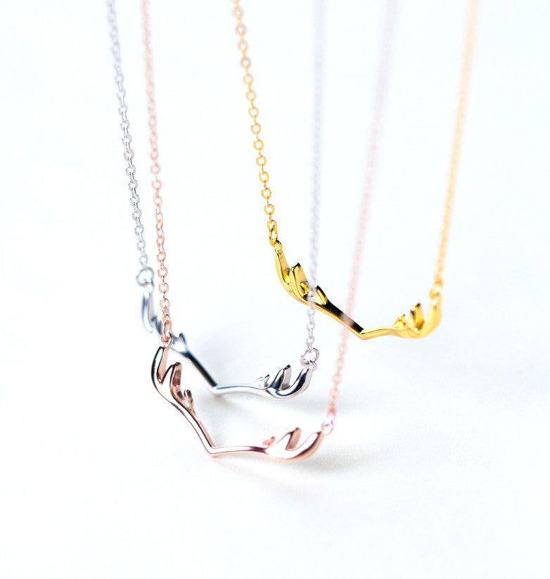As a sacred animal, deer is a majestic symbol for gentleness and grace. This delicate deer antler pendant necklace is one of our most popular jewelry and makes a perfect gift for someone with such kind qualities. Crafted in sterling silver, this timeless piece comes in silver, yellow gold or rose gold that adds more than class to your everyday look.