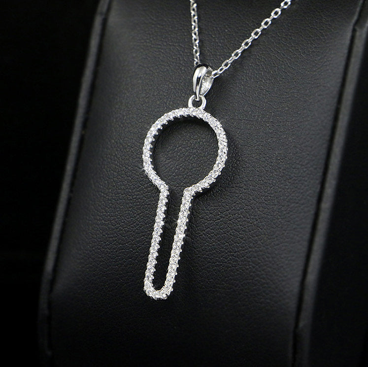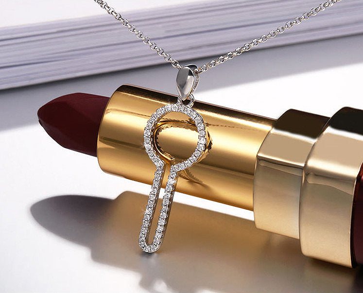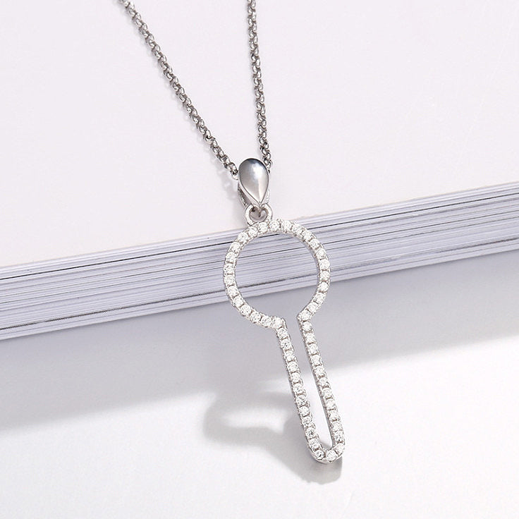 This stylish loop key pendant sterling silver necklace gives a modern twist to a classic jewelry. The pendant is pave with beautiful petite round white CZ diamonds all around for an sparkling effect. A timeless piece of jewelry perfect for every or any girl on your gift list to keep her on trend.